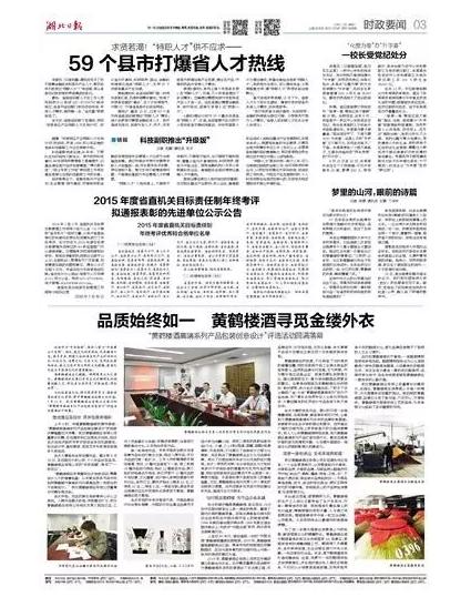 上世紀90年代,曾經盛極一時的“中國名酒”黃鶴樓酒遭遇發展瓶頸。2003年,黃鶴樓酒重振旗鼓再出江湖,秉承傳統的純糧固態發酵釀酒法,在如今競爭激烈的白酒市場上開辟一條與時俱進的康莊大道。